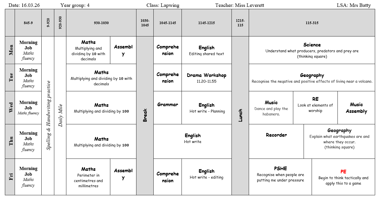 Weekly Timetable WB 16.03.26
