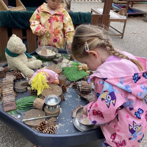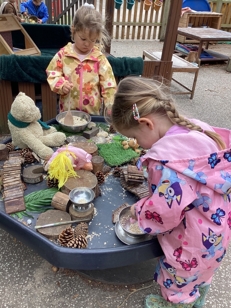 We love being outdoors in all weathers! The children have been enjoying many activities relating to 'Goldilocks and the Three Bears'