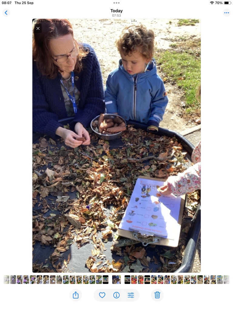 We have been learning how to print using items we collected on our Autumn walk. We have also been using our conkers to practice our careful counting. During our circle time, we have been looking at Autumn animals where some fabulous discussions have taken place.