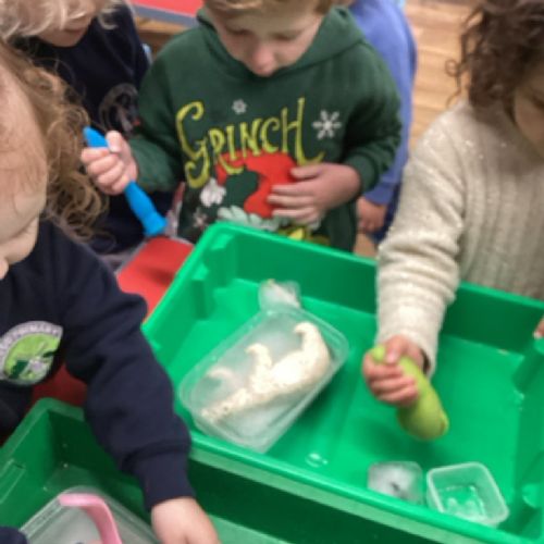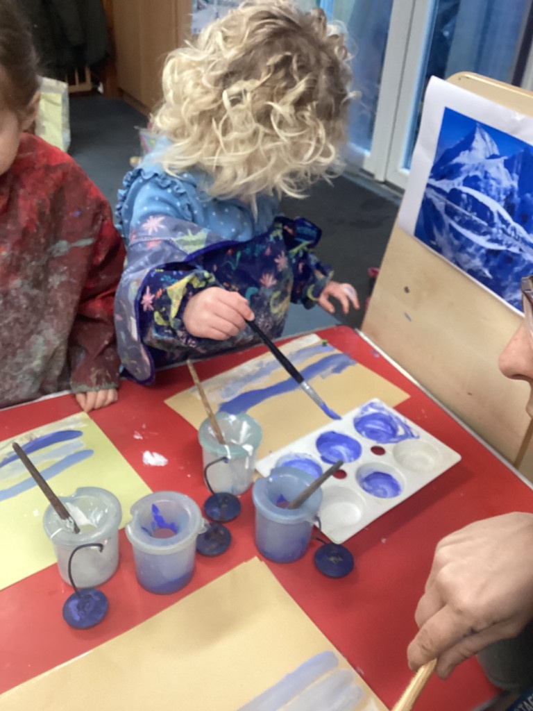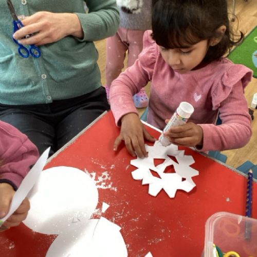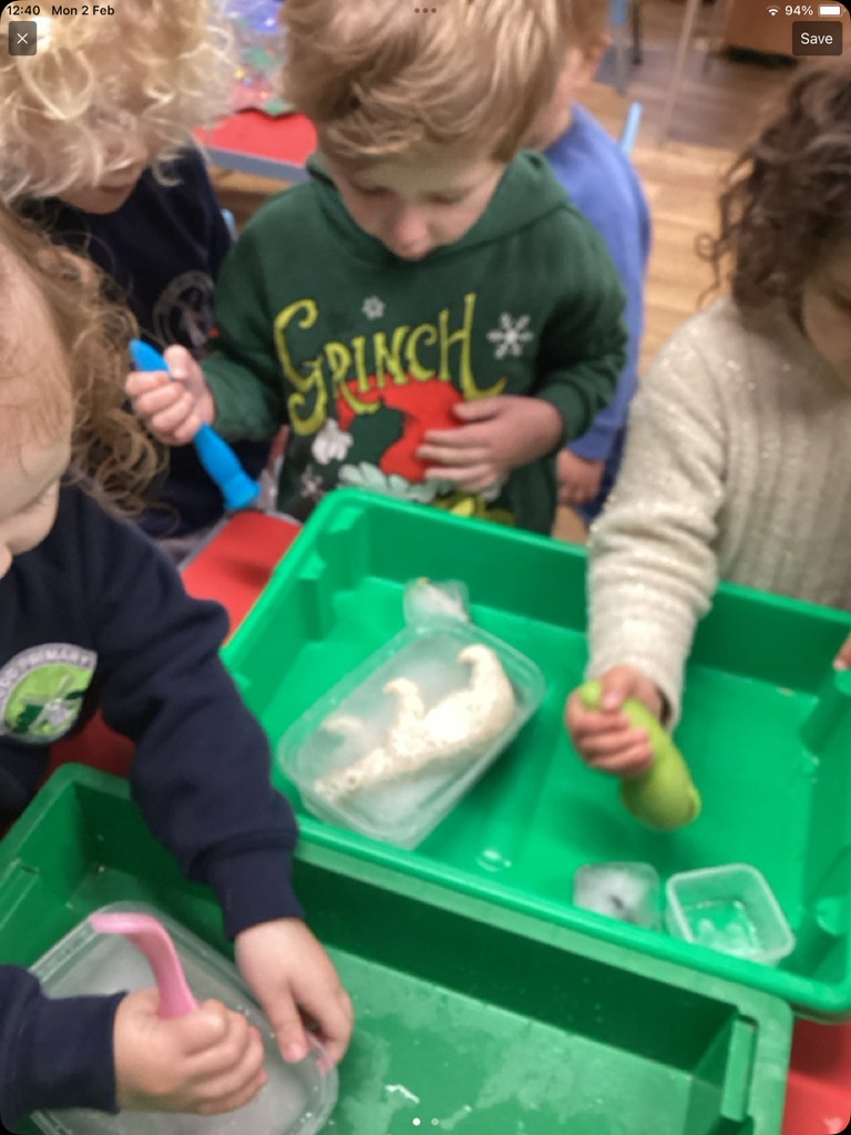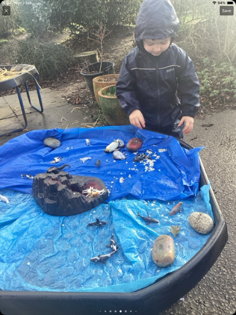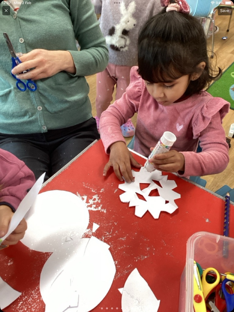 The children have had fun exploring Winter. We have been looking at different shades of blue and cold colours and creating our own paint shades. The children had to break the animals free from the ice using different tools and have refined their scissor skills creating some beautiful frozen snowflakes too. We have discussed how to keep warm in Winter and explored the animals that live in 'Icy' Habitats too.