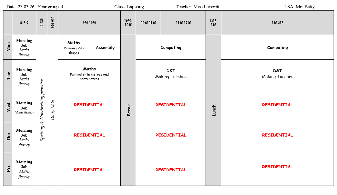 Weekly Timetable WB 23.03.26