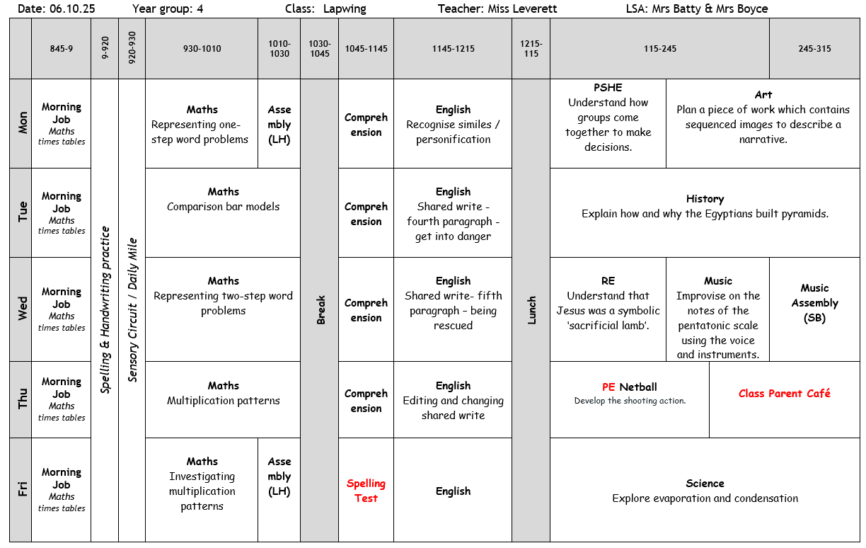 Weekly Timetable WB 06.10.25