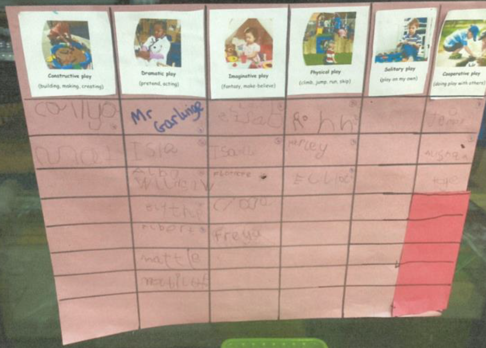 The Reception children were asked about their favourite types of play: