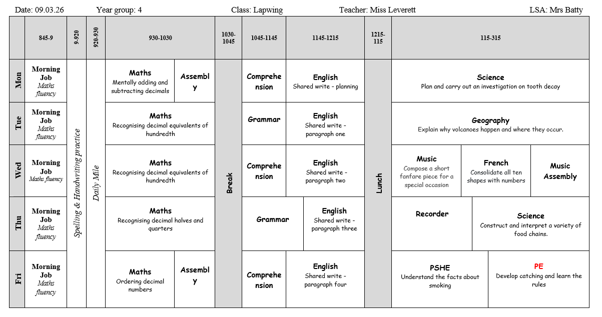 Weekly Timetable WB 09.03.26