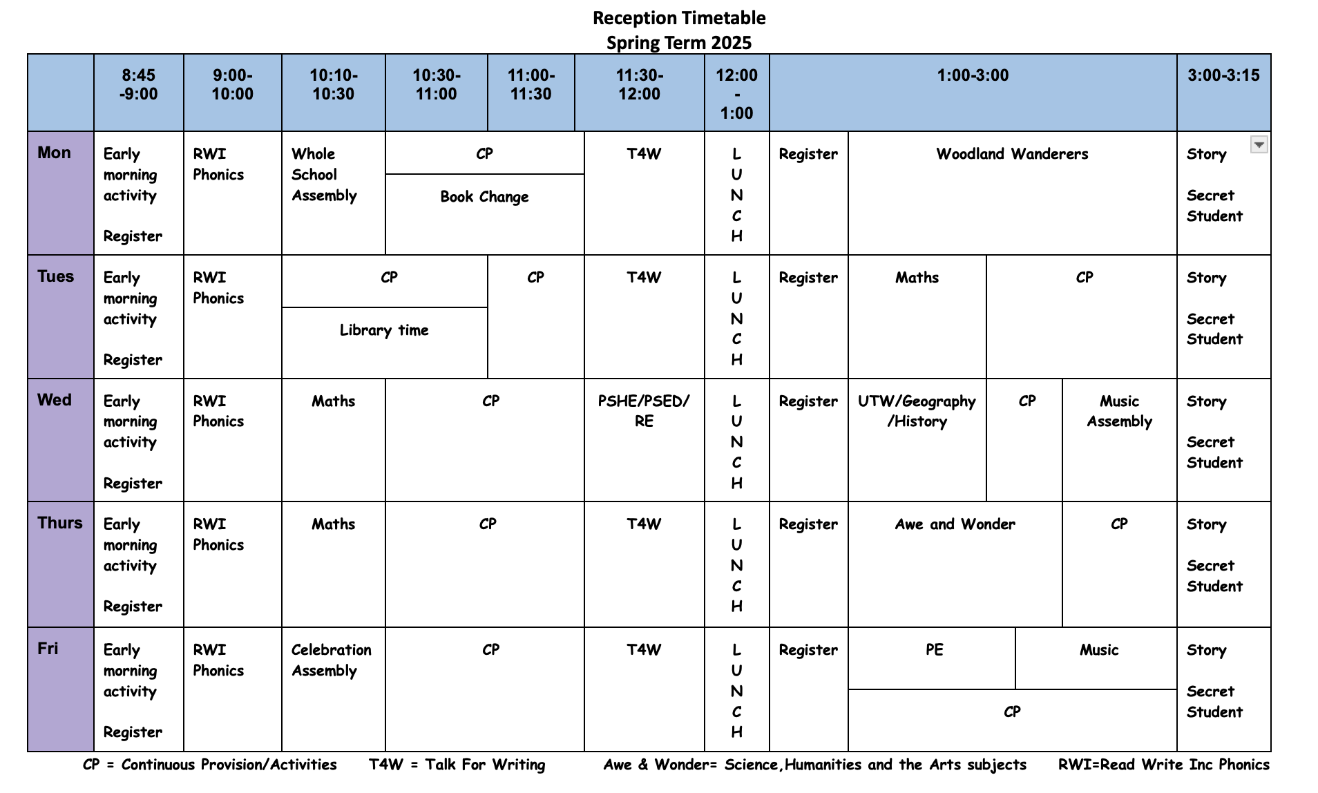 Starling class timetable: